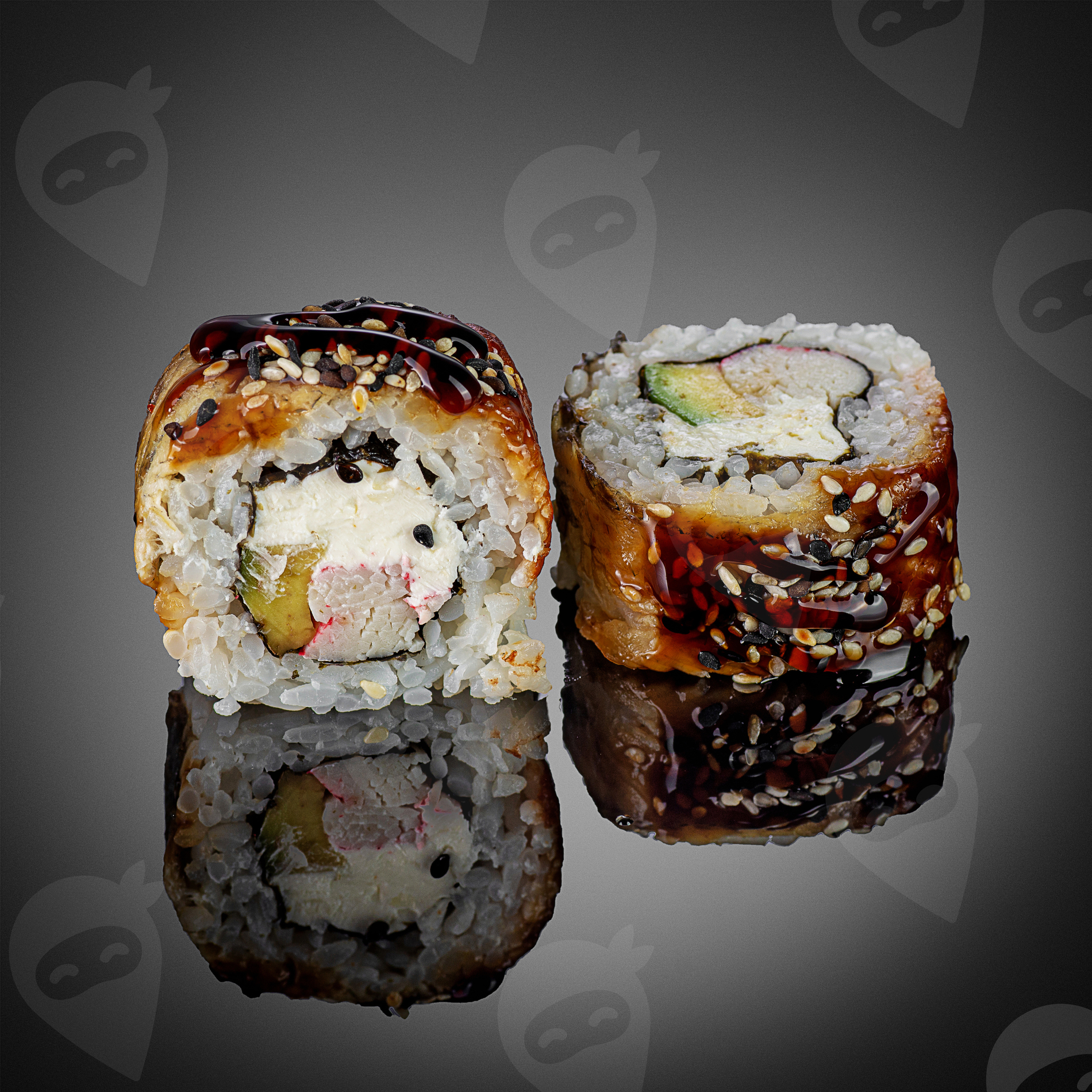 Рис, нежный сливочный сыр, свежий огурчик, филе лосося слабой соли. В комплект входит: соевый соус, васаби, имбирь, палочки.