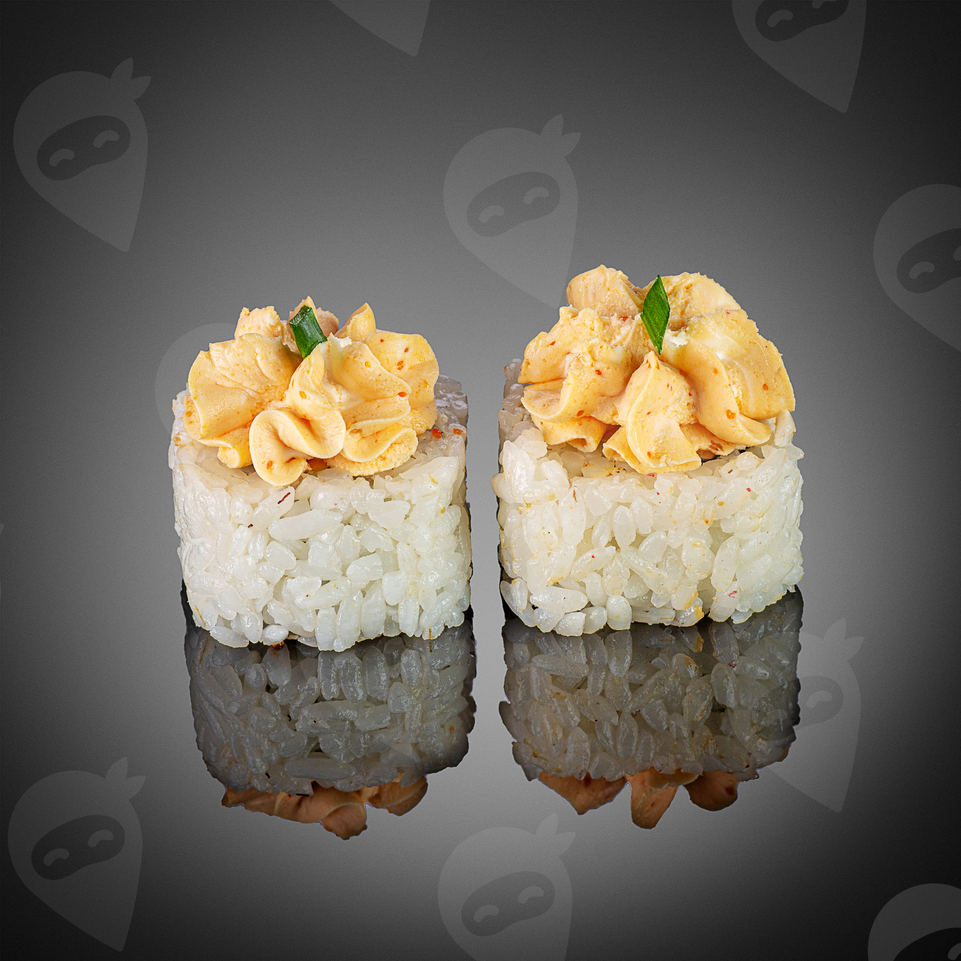 Рис, лосось слабой соли, сливочныйо сыр, зеленый лук, украшен пикантным соусом Лава. В комплект входит: соевый соус, васаби, имбирь, палочки.
